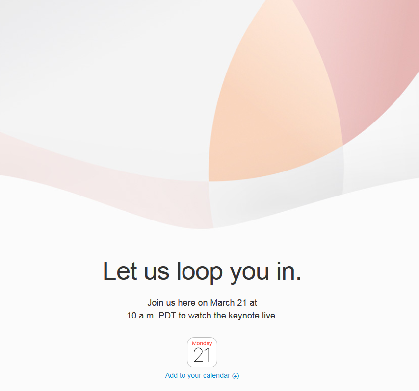 發(fā)布日期:2016-03-12 關(guān)鍵詞:新iphone或發(fā)布!蘋果發(fā)布會時間確定:3月22日凌晨 已有 5758 人瀏覽