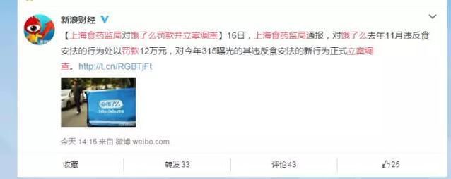還拿倒運(yùn)悲催的餓了么為例,新浪新聞對此進(jìn)行了查詢,發(fā)現(xiàn)有七成網(wǎng)友反應(yīng),會影響對餓了么的使用,并且該公司還被處罰了12萬元。